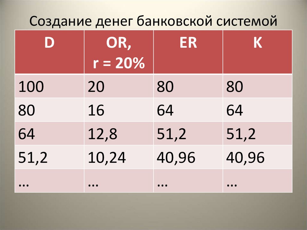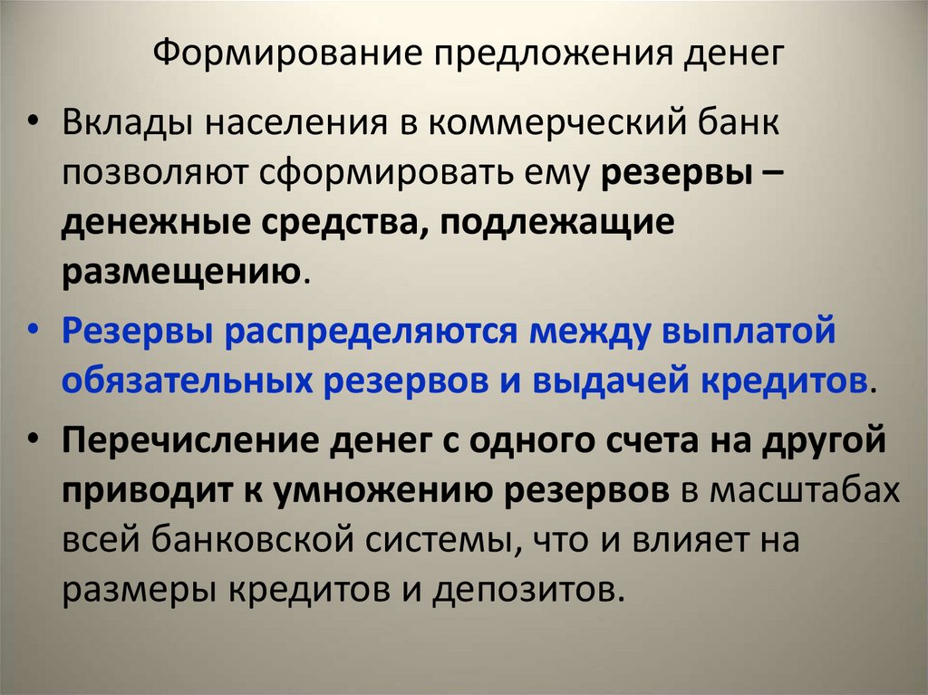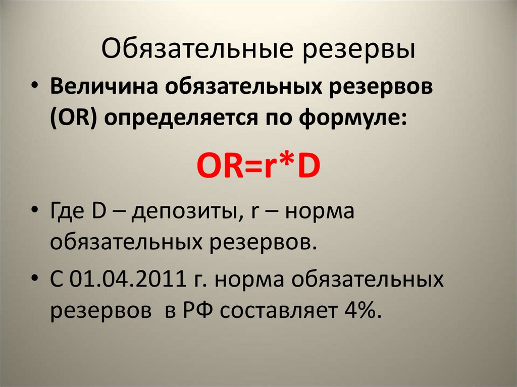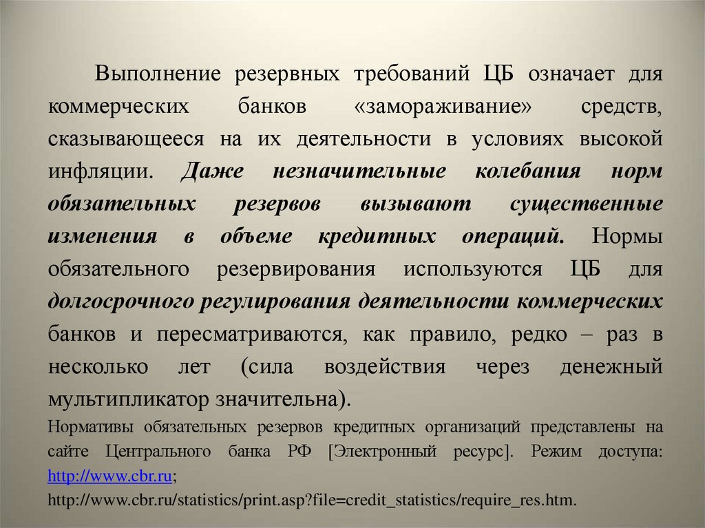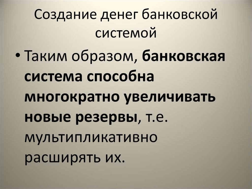 резервных счетах, вследствие чего повышается способность банков к выдаче ссуд, а