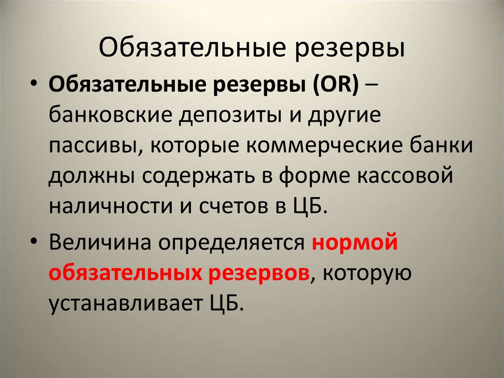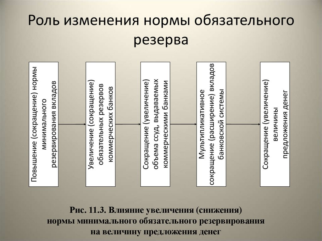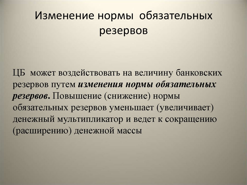 ЦБ добивается увеличения банковских резервов, т. е. увеличивает сумму денег на их