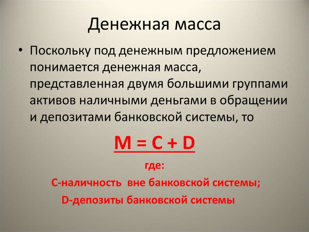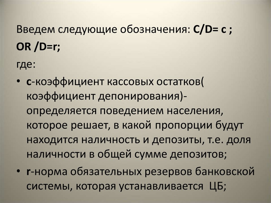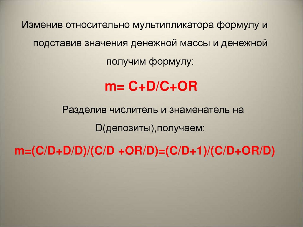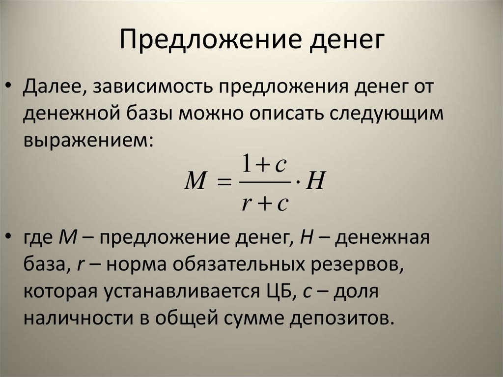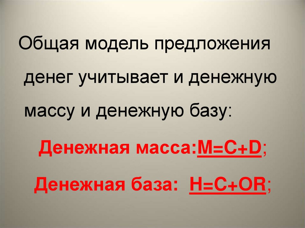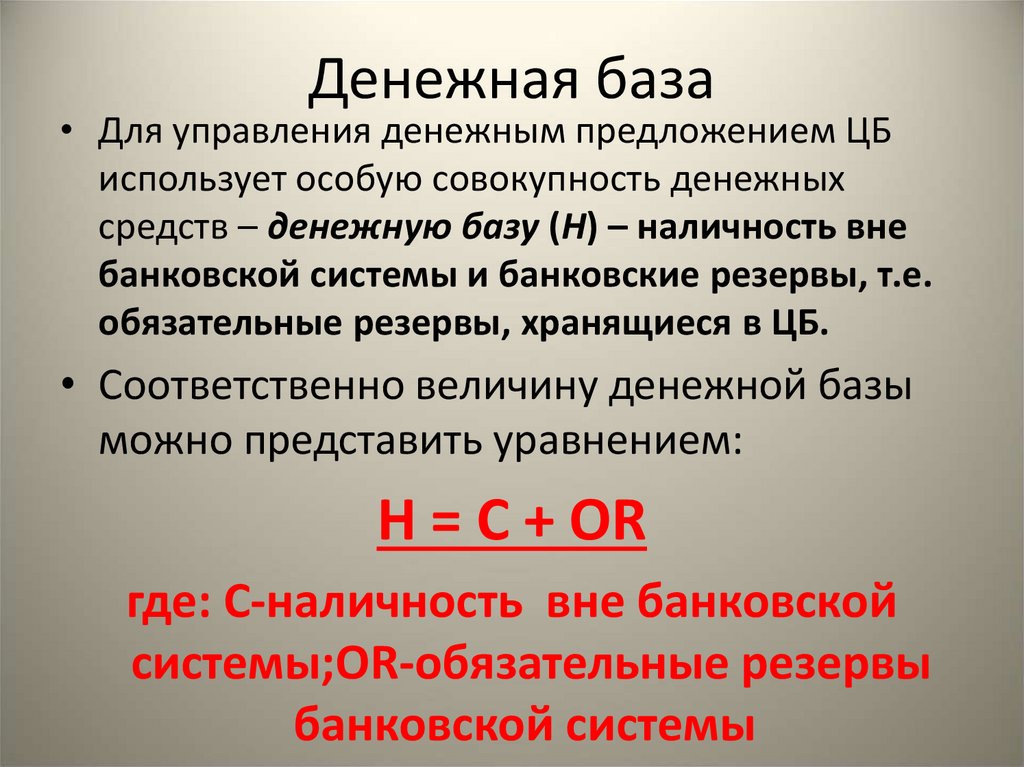 и резервы (С + R) – это, как известно, денежная база. Следовательно, ЦБ