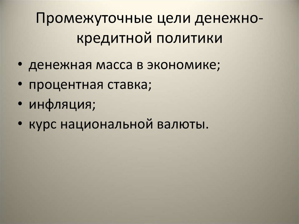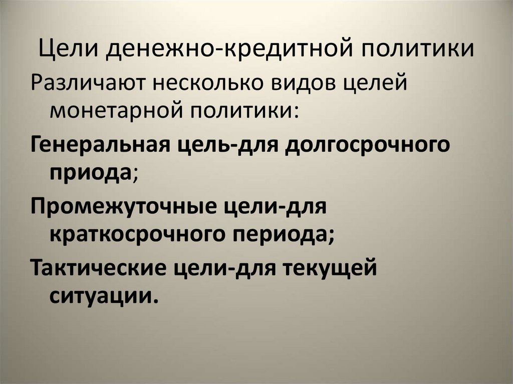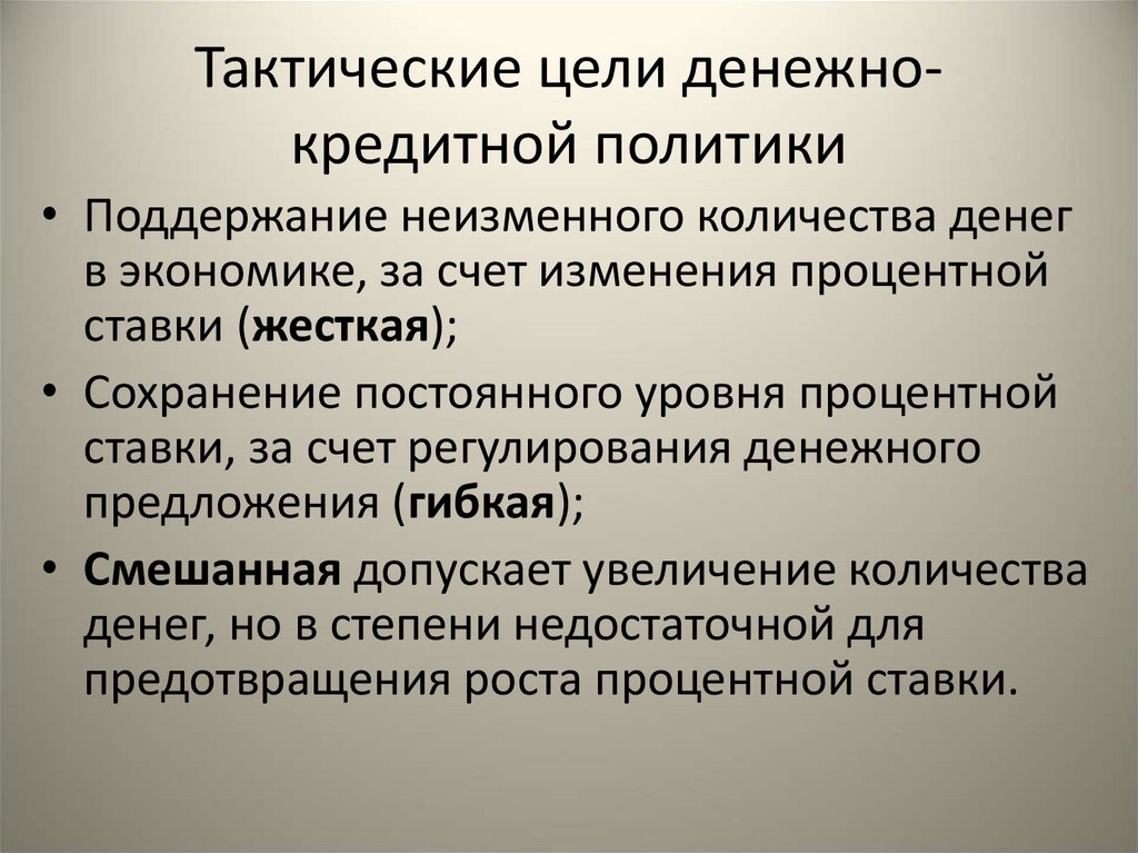 Тактические цели денежнокредитной политики• Поддержание неизменного количества денег