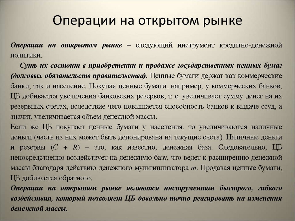 Операции на открытом рынке являются инструментом быстрого, гибкого