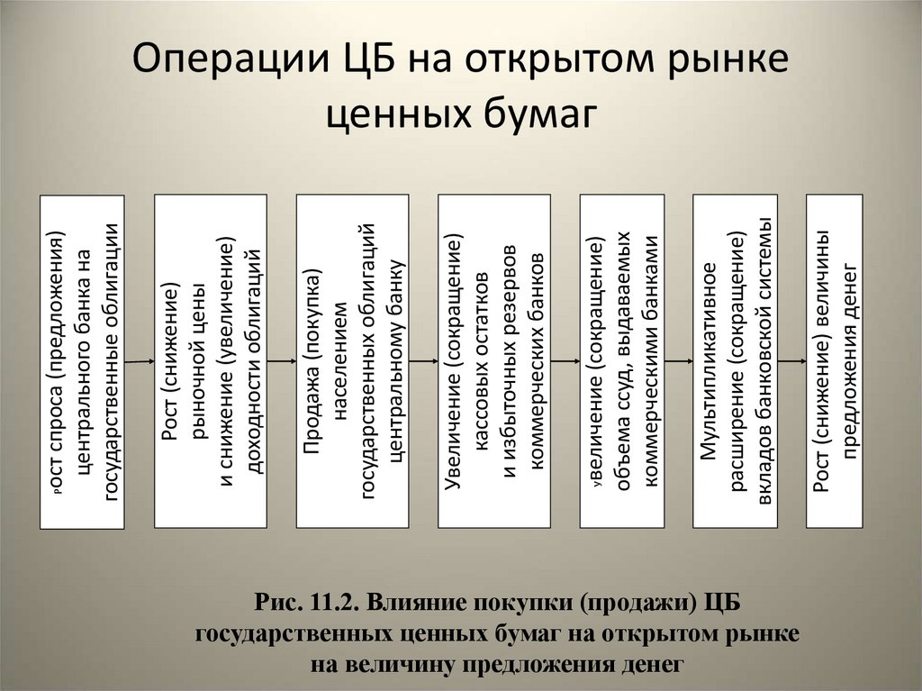 Если же ЦБ покупает ценные бумаги у населения, то увеличиваются наличные