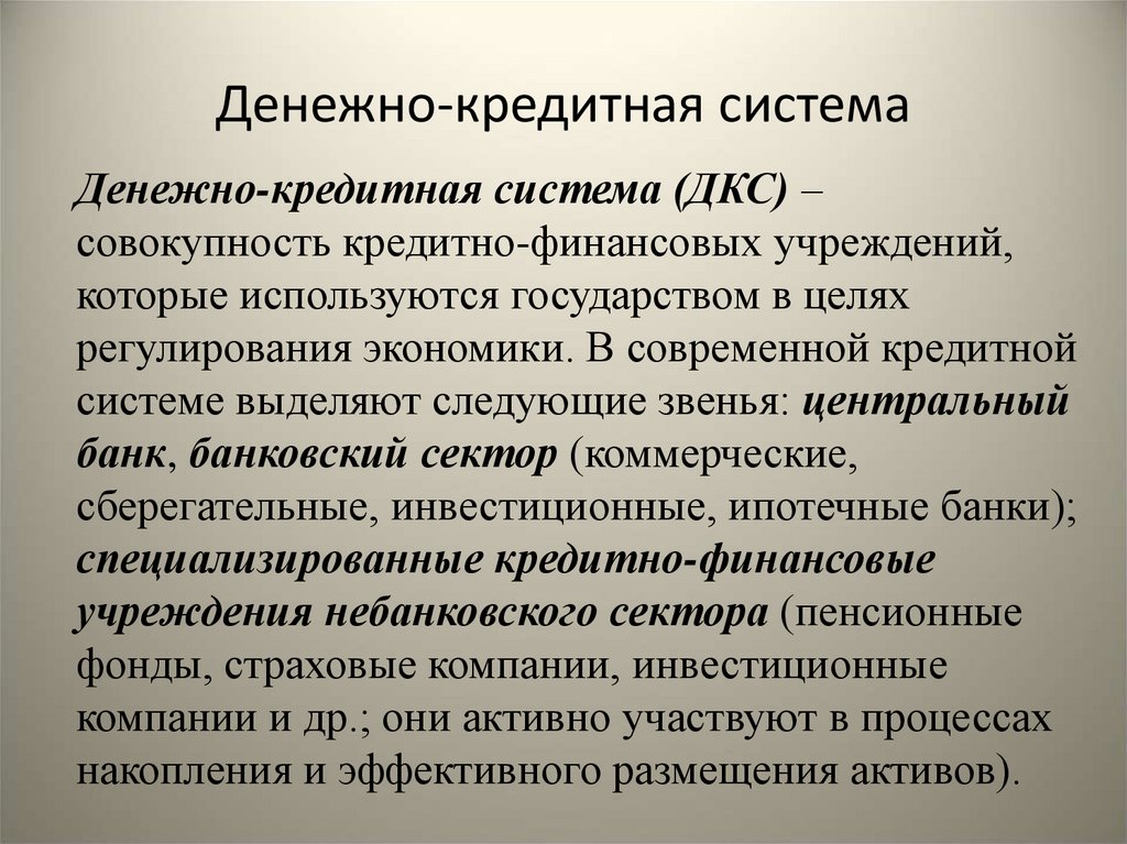 Денежно-кредитная система (ДКС) –совокупность кредитно-финансовых учреждений,