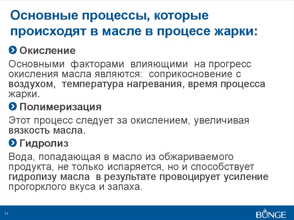 Основные процессы, которыепроисходят в масле в процесе жарки: