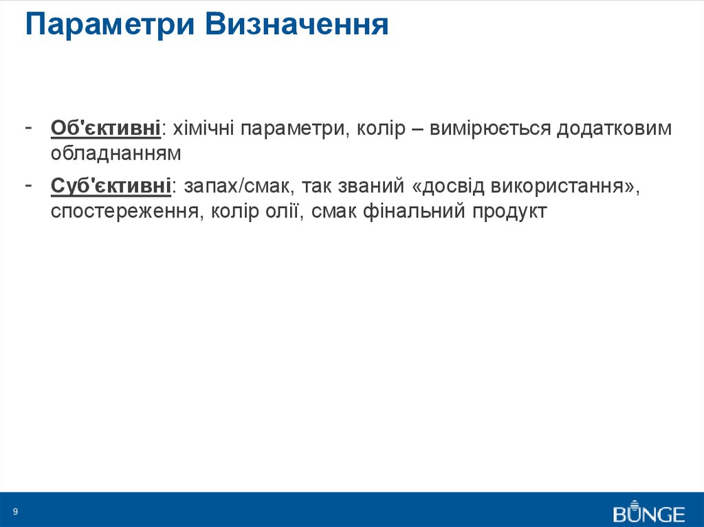 Параметри Визначення- Об'єктивні: хімічні параметри, колір – вимірюється додатковим