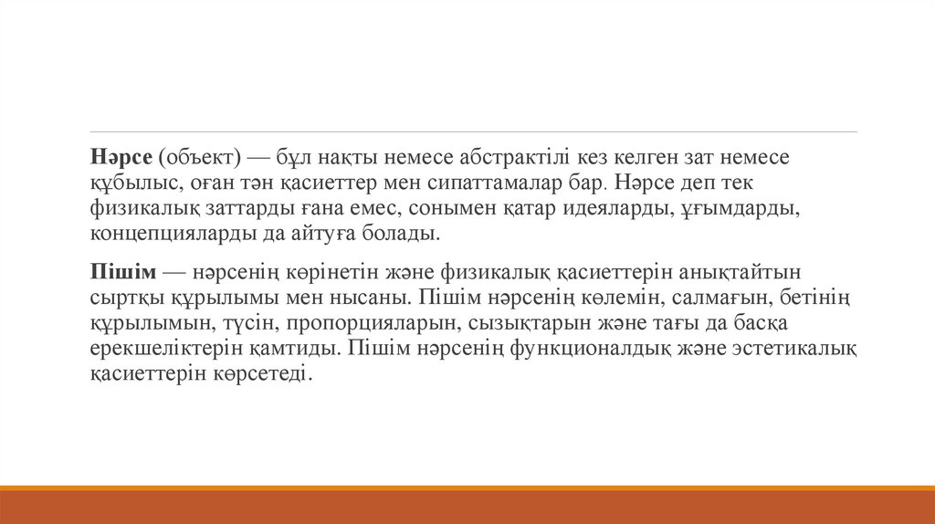 Нәрсе (объект) — бұл нақты немесе абстрактілі кез келген зат немесеқұбылыс, оған тән қасиеттер мен сипаттамалар бар. Нәрсе деп тек