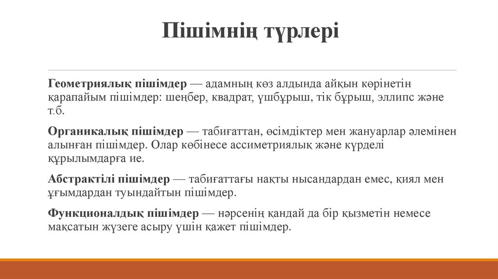 Пішімнің түрлеріГеометриялық пішімдер — адамның көз алдында айқын көрінетін