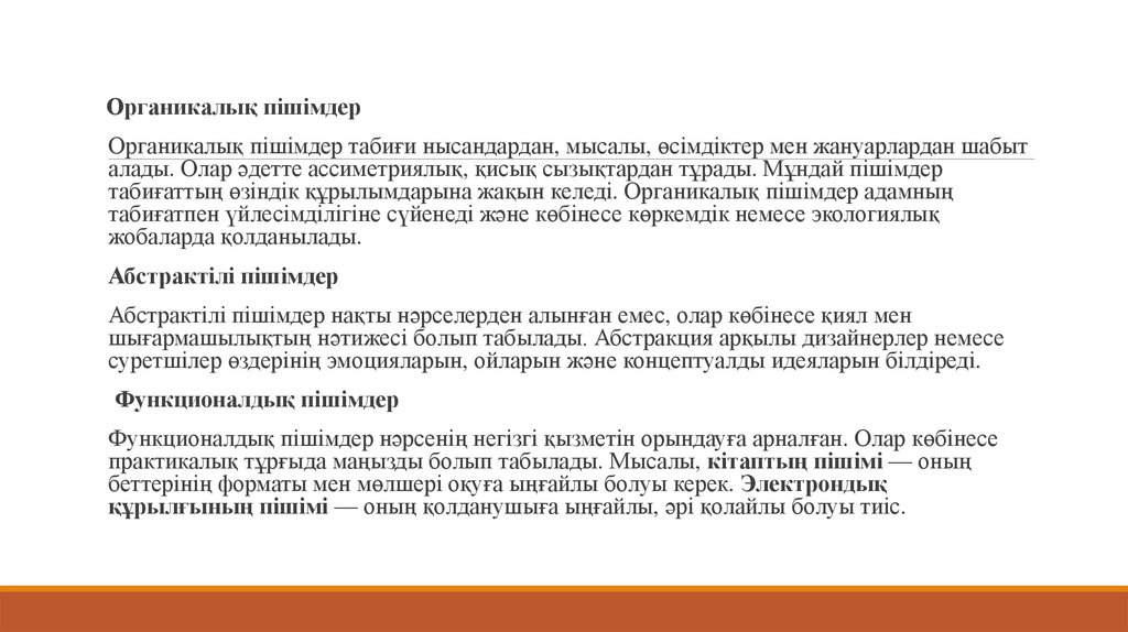 табиғаттың өзіндік құрылымдарына жақын келеді. Органикалық пішімдер адамның