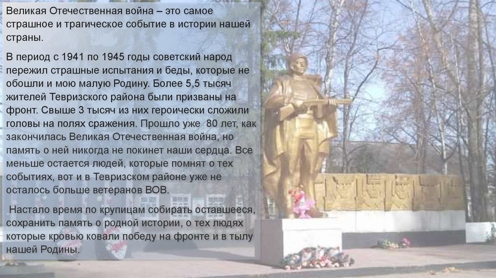 Великая Отечественная война – это самоестрашное и трагическое событие в истории нашей
