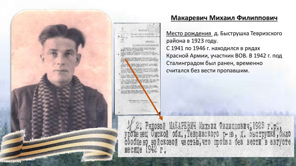 Макаревич Михаил ФилипповичМесто рождения д. Быструшка Тевризского