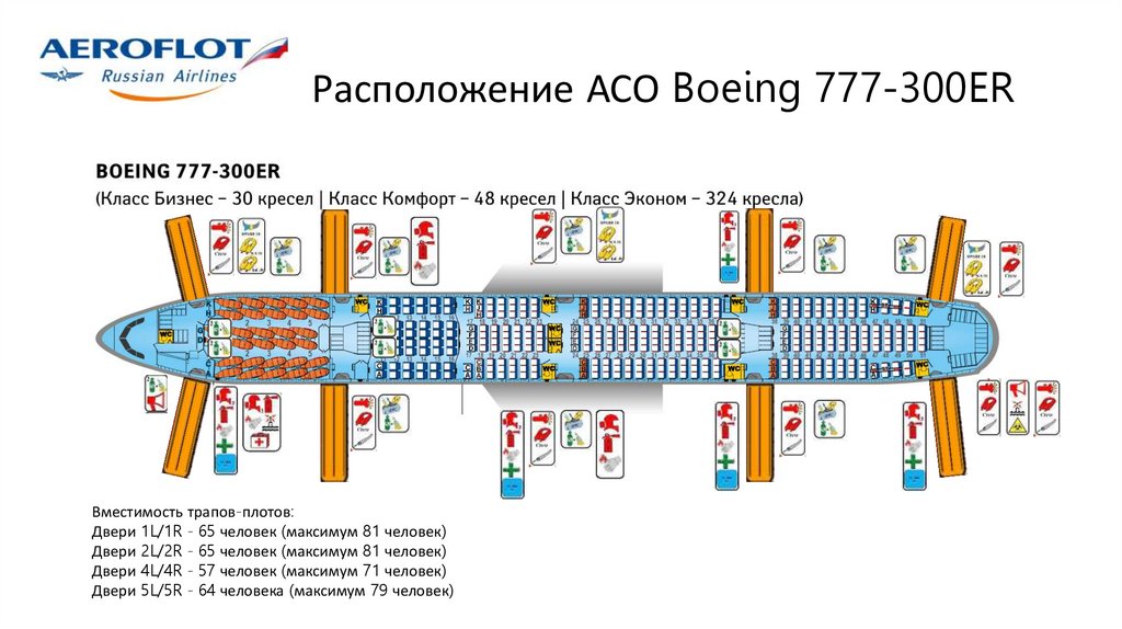 Расположение АСО Boeing 777-300ERВместимость трапов-плотов:
