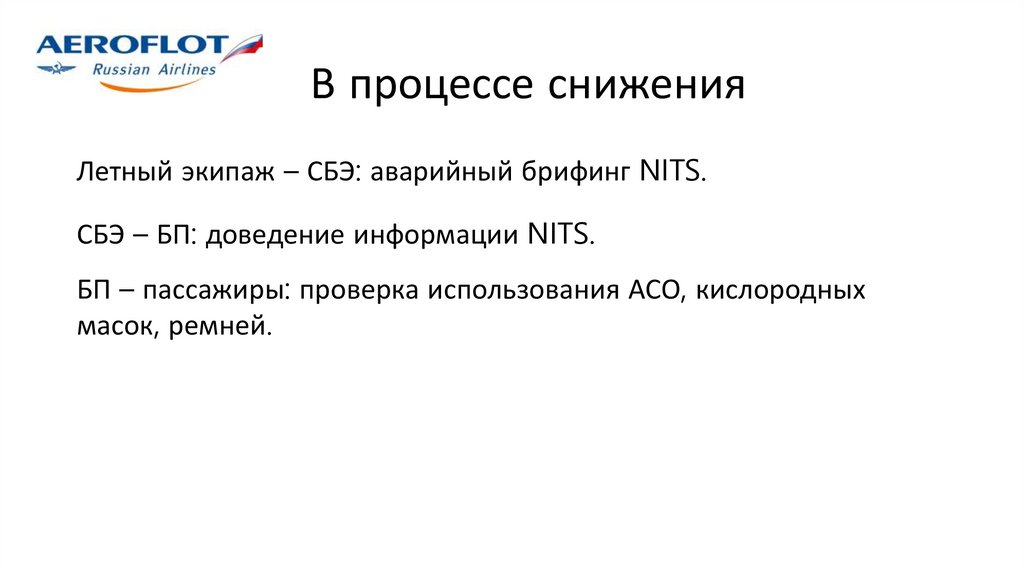 В процессе сниженияЛетный экипаж – СБЭ: аварийный брифинг NITS.