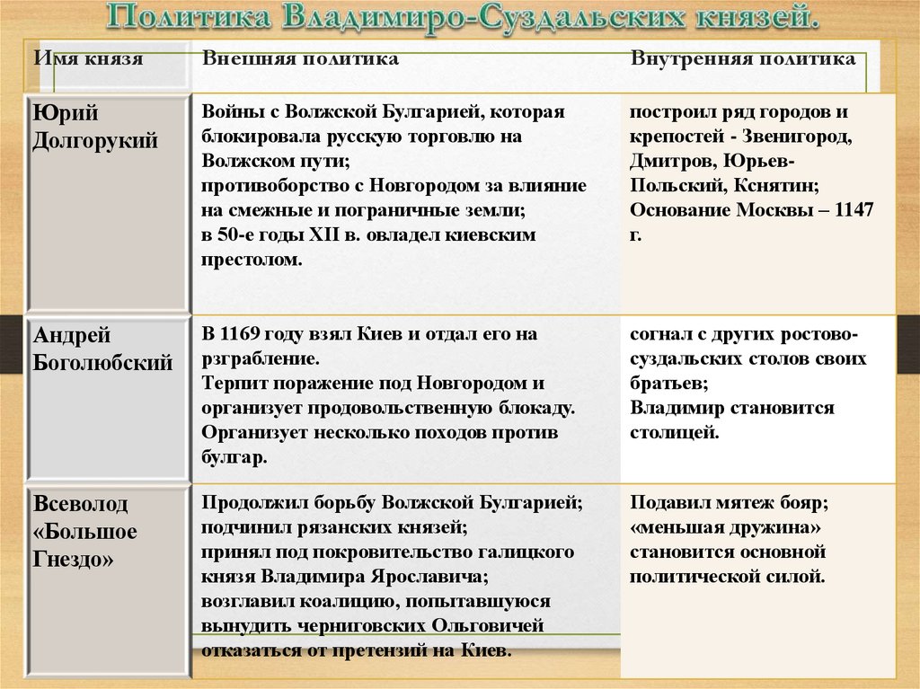 Став князем, Андрей перенёс столицу княжества во Владимир. Князьсовершил несколько успешных походов на Волжскую Булгарию и русские