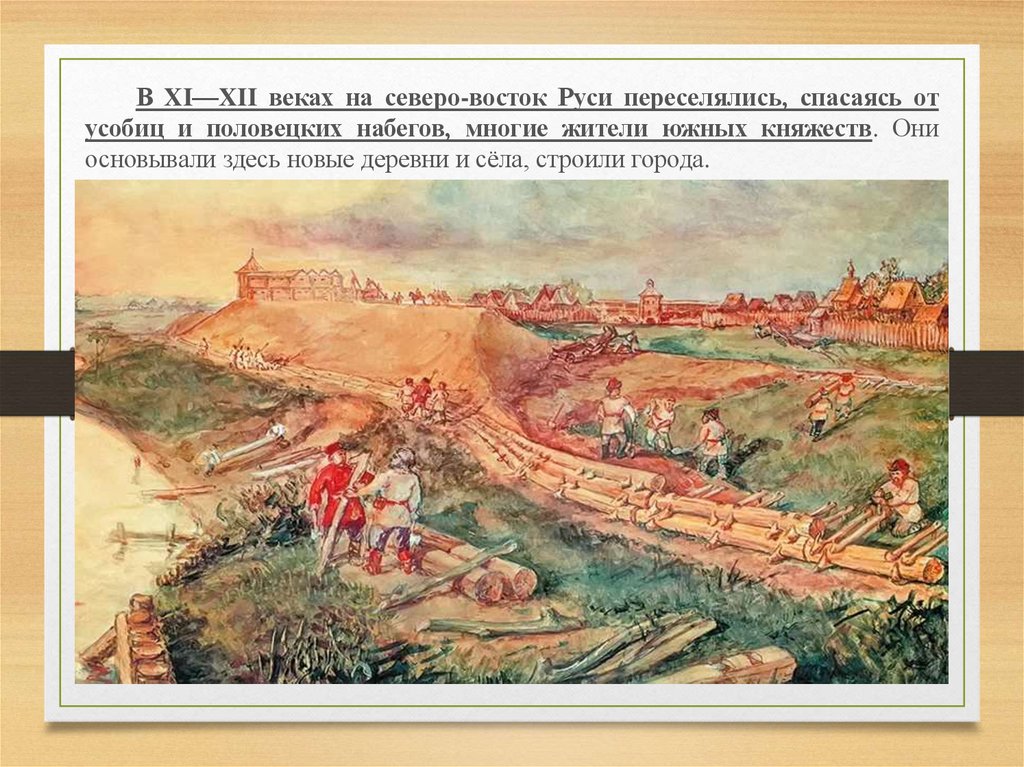 В XI—XII веках на северо-восток Руси переселялись, спасаясь отусобиц и половецких набегов, многие жители южных княжеств. Они
