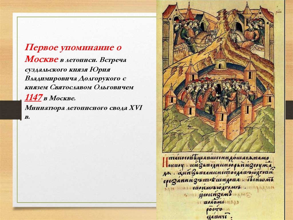 В Ипатьевской летописи под 1147 годомвпервые упоминается Москва, где Юрий