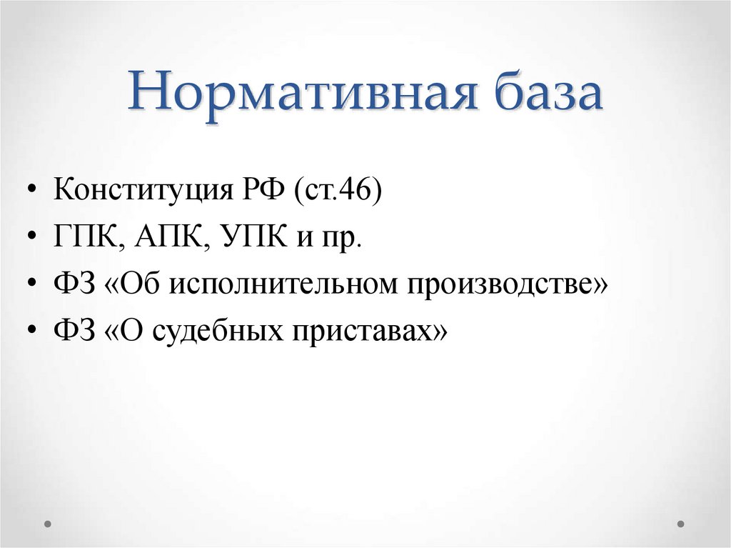 • Конституция РФ (ст.46)• ГПК, АПК, УПК и пр.