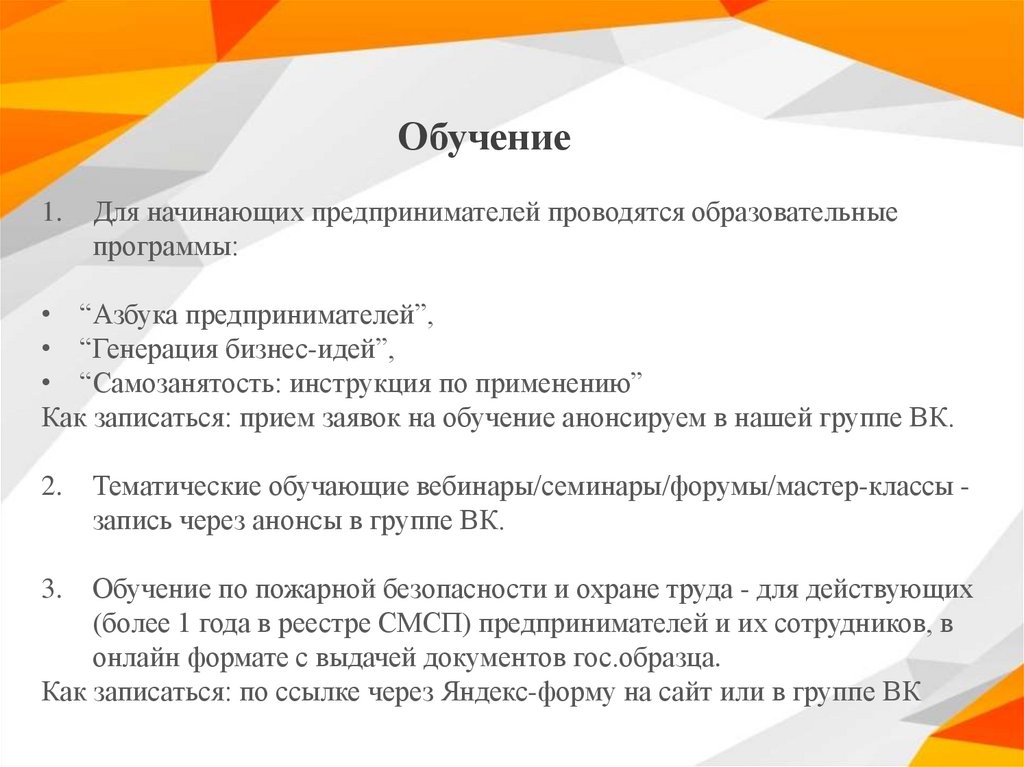Для начинающих предпринимателей проводятся образовательные
