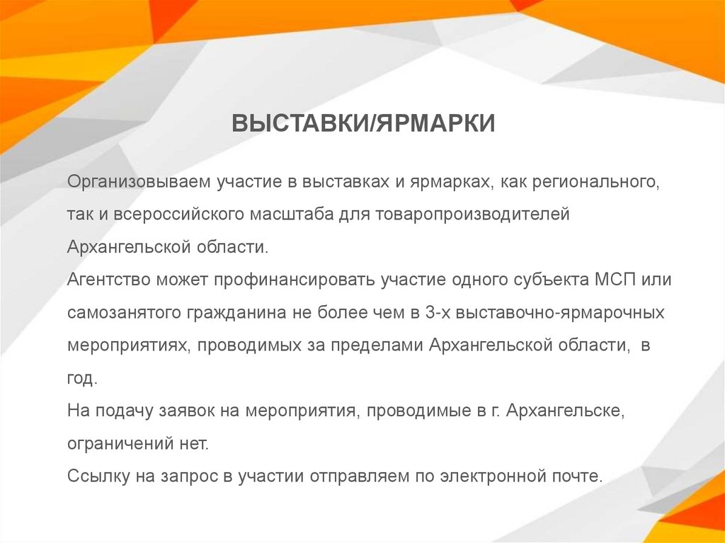 ВЫСТАВКИ/ЯРМАРКИОрганизовываем участие в выставках и ярмарках, как регионального,