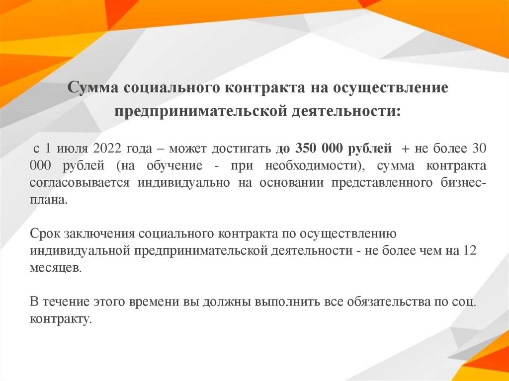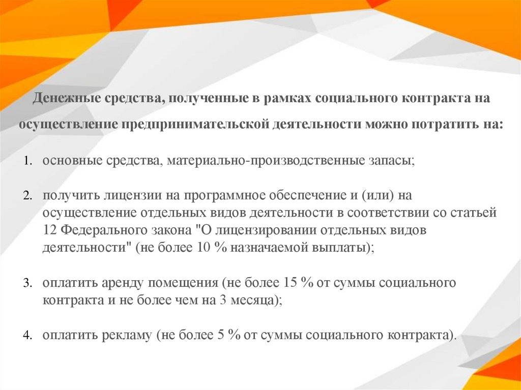 4. оплатить рекламу (не более 5 % от суммы социального контракта).