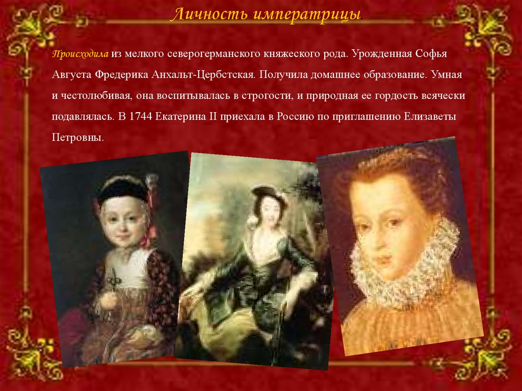 подавлялась. В 1744 Екатерина II приехала в Россию по приглашению Елизаветы