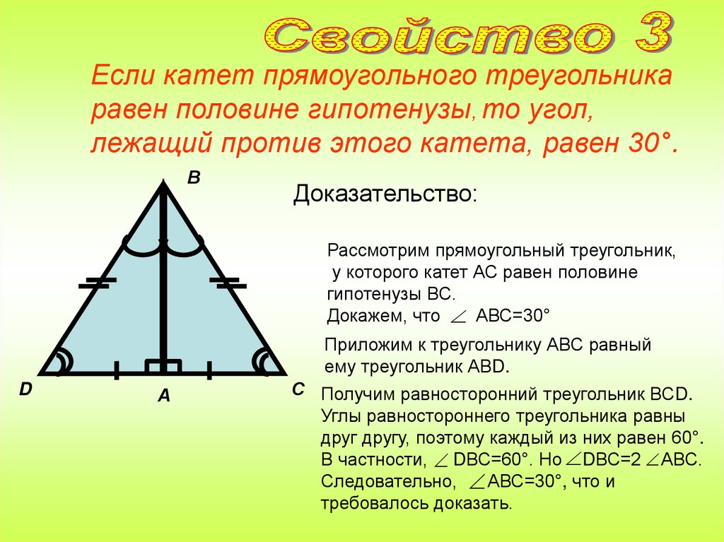 Если катет прямоугольного треугольникаравен половине гипотенузы, то угол,