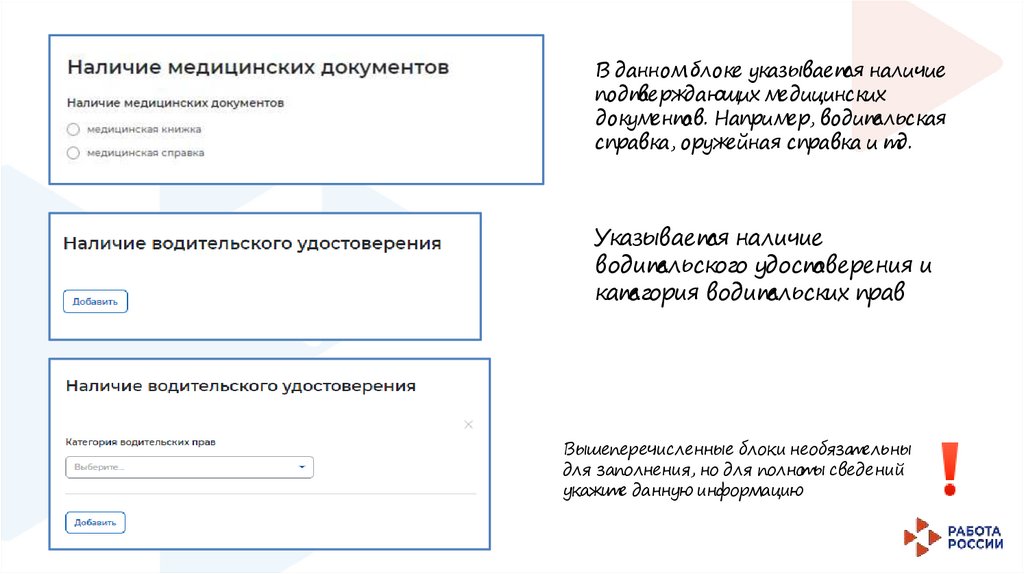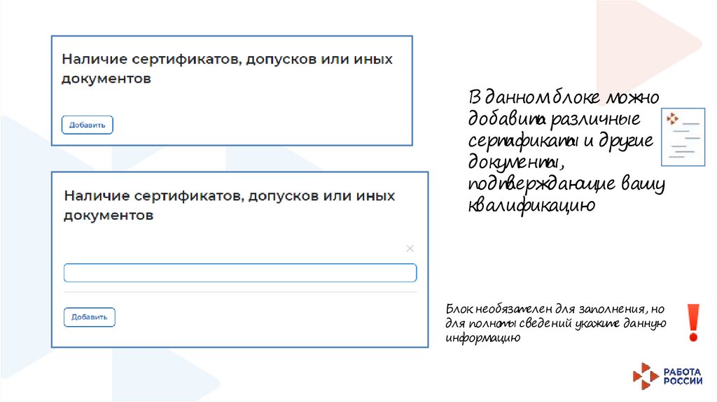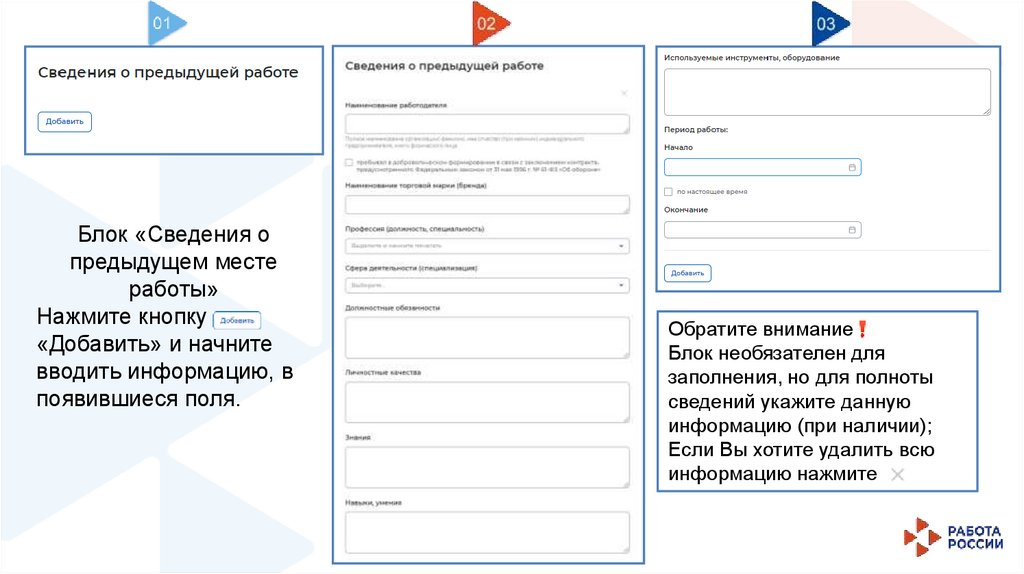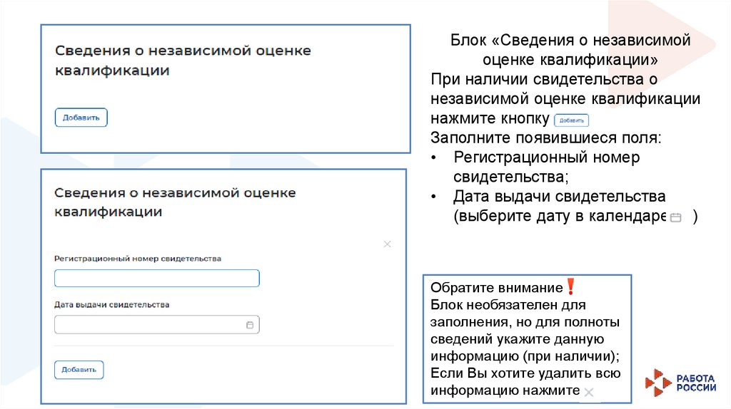 Блок необязателен для заполнения, но