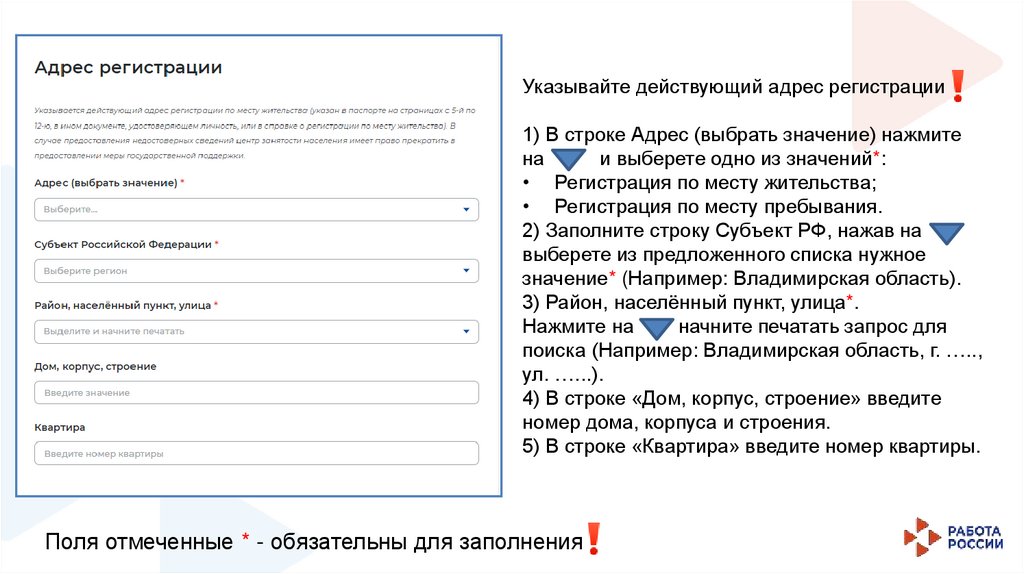 Указывайте действующий адрес регистрации1) В строке Адрес (выбрать значение) нажмите