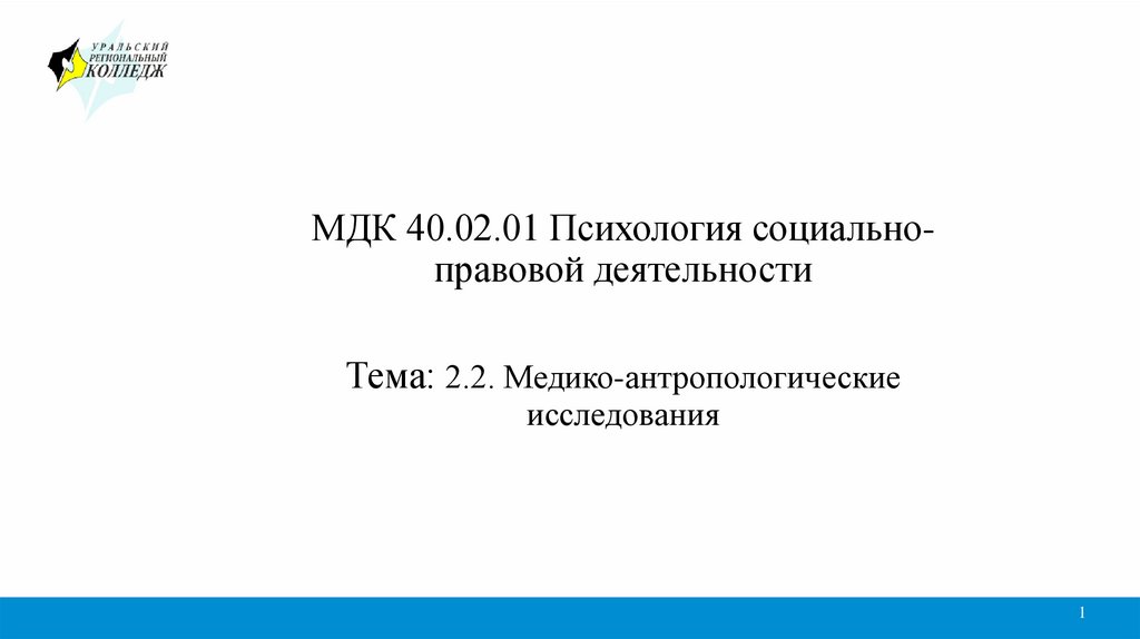 МДК 40.02.01 Психология социальноправовой деятельностиТема: 2.2. Медико-антропологические