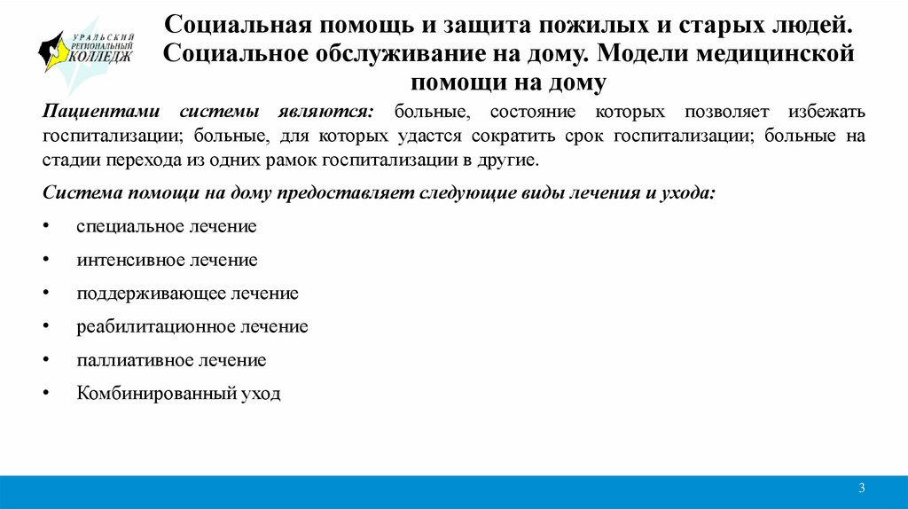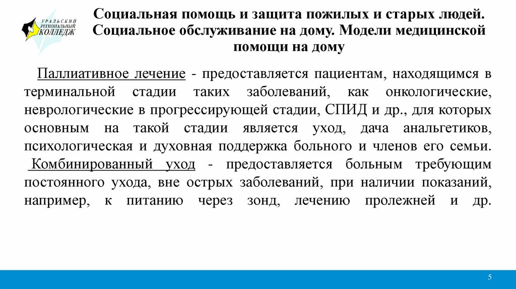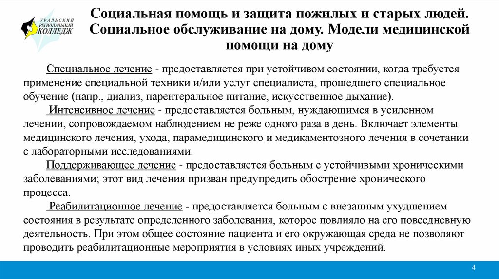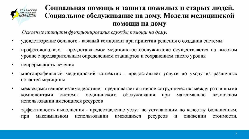 Социальная помощь и защита пожилых и старых людей.Социальное обслуживание на дому. Модели медицинской