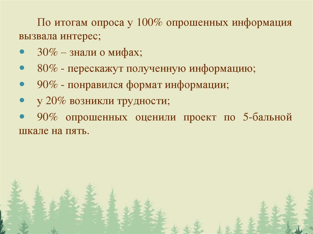 По итогам опроса у 100% опрошенных информациявызвала интерес;