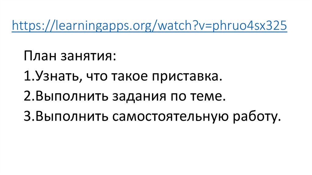 План занятия:1.Узнать, что такое приставка.