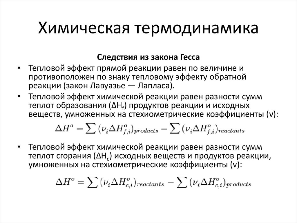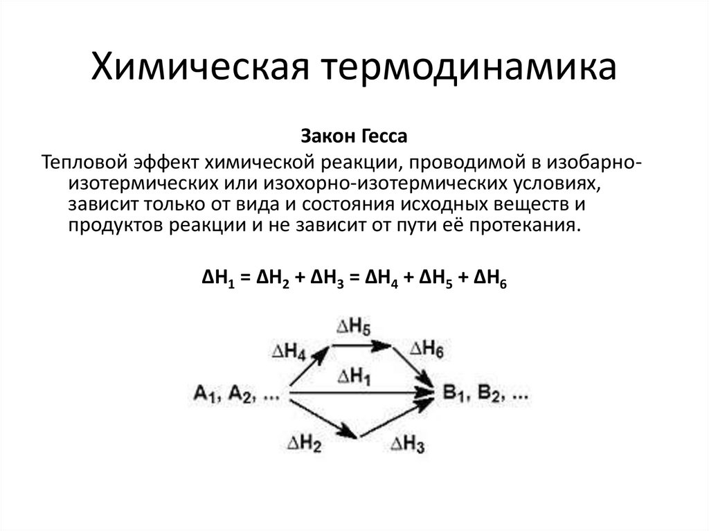 Закон ГессаТепловой эффект химической реакции, проводимой в изобарноизотермических или изохорно-изотермических условиях,