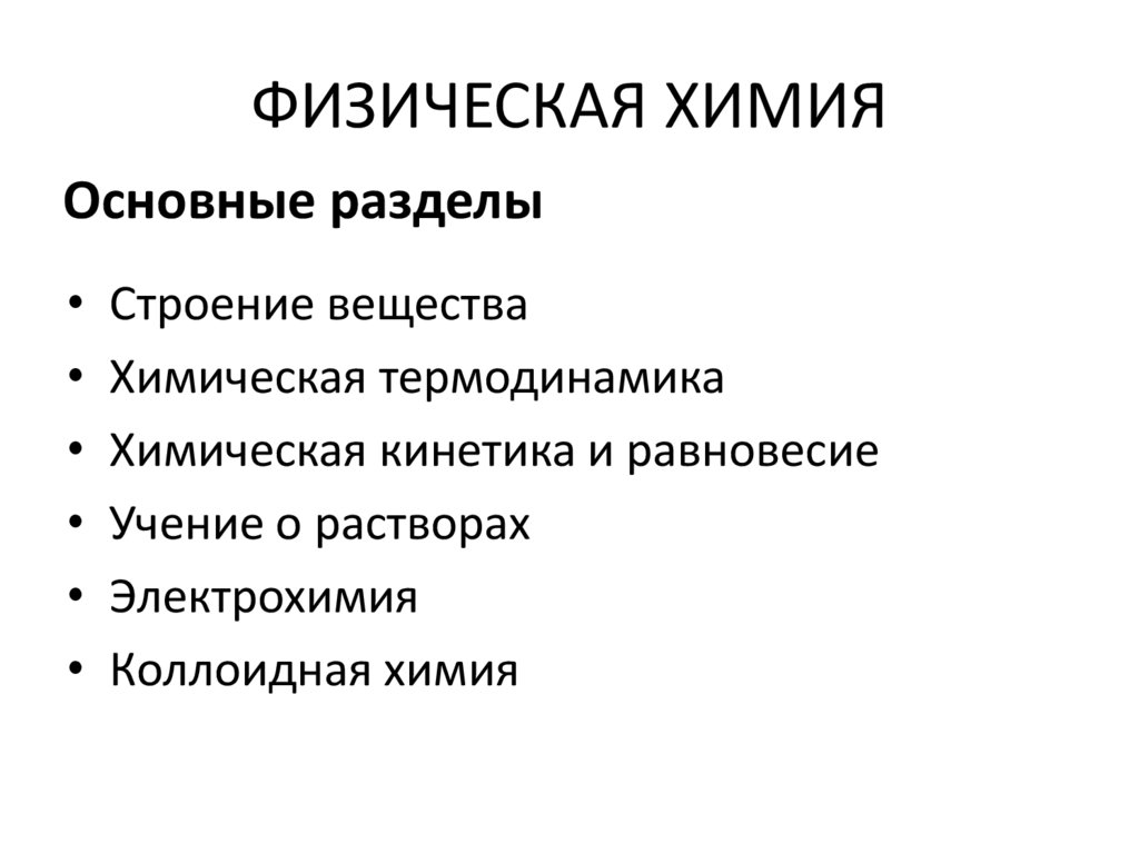 ФИЗИЧЕСКАЯ ХИМИЯОсновные разделы
