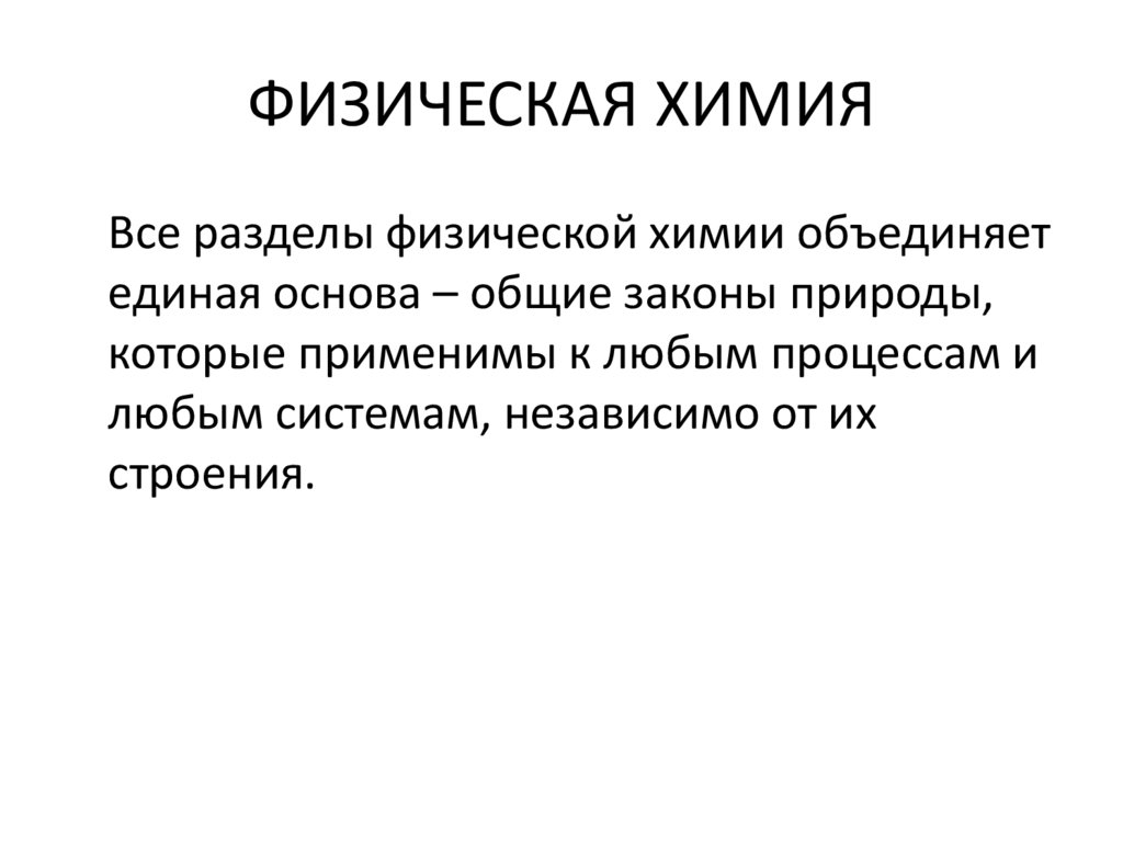Все разделы физической химии объединяетединая основа – общие законы природы,