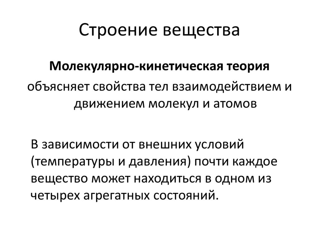 Молекулярно-кинетическая теорияобъясняет свойства тел взаимодействием и