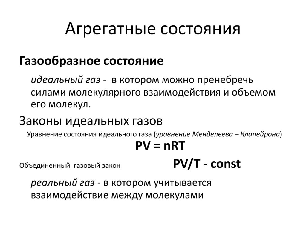 Газообразное состояниеидеальный газ - в котором можно пренебречь