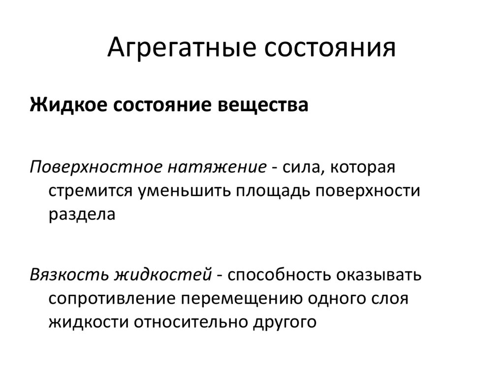 Жидкое состояние веществаПоверхностное натяжение - сила, которая