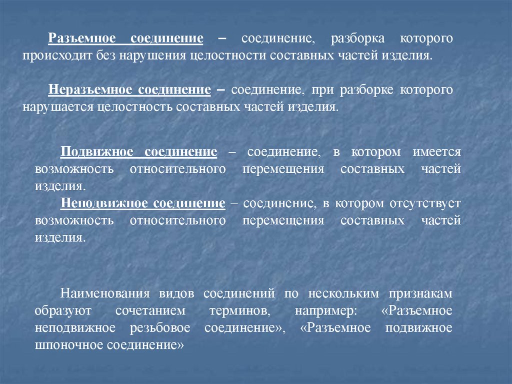 Разъемное соединение – соединение, разборка которогопроисходит без нарушения целостности составных частей изделия.