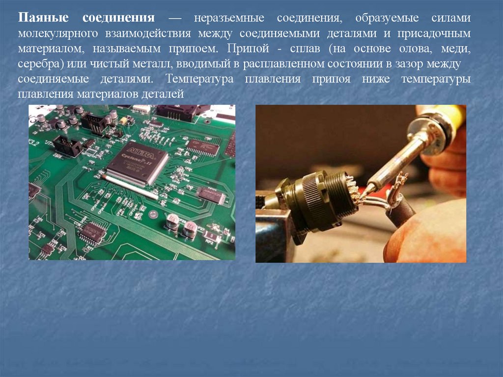 соединяемые деталями. Температура плавления припоя ниже температуры