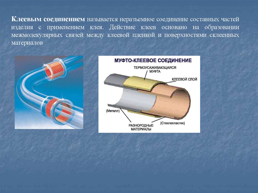 Клеевым соединением называется неразъемное соединение составных частейизделия с применением клея. Действие клеев основано на образовании