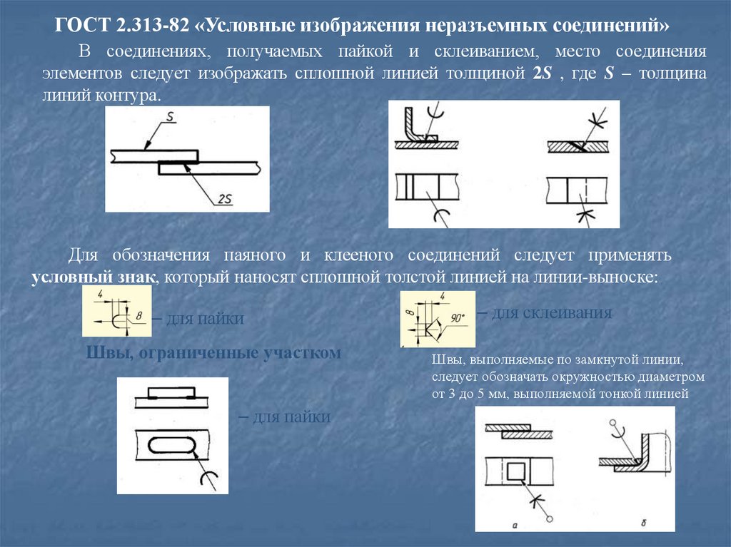 ГОСТ 2.313-82 «Условные изображения неразъемных соединений»В соединениях, получаемых пайкой и склеиванием, место соединения