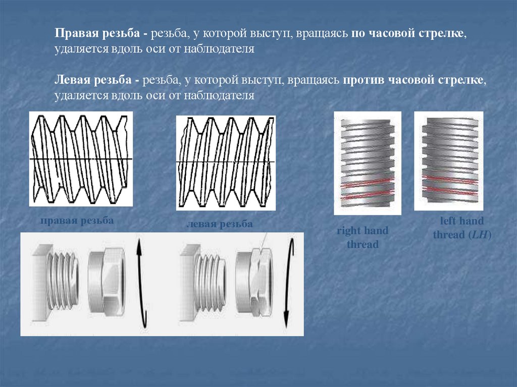 Условное обозначение для левой резьбы дополняют буквами LH.