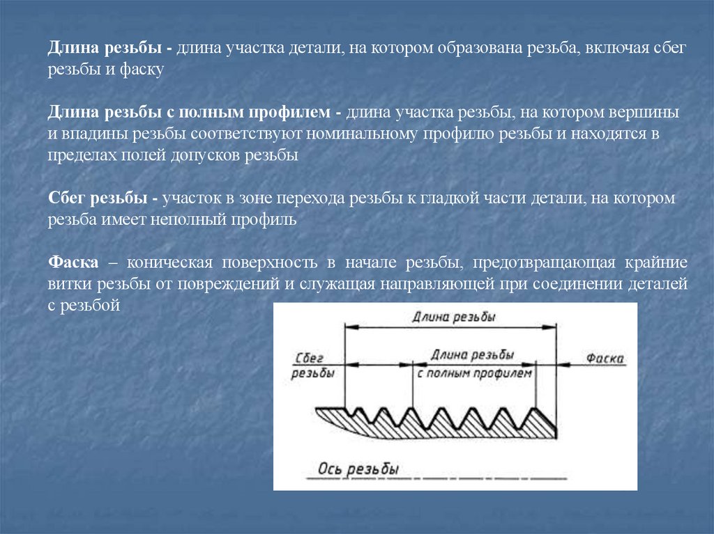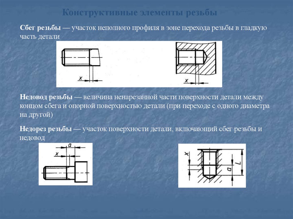 Конструктивные элементы резьбыСбег резьбы — участок неполного профиля в зоне перехода резьбы в гладкую