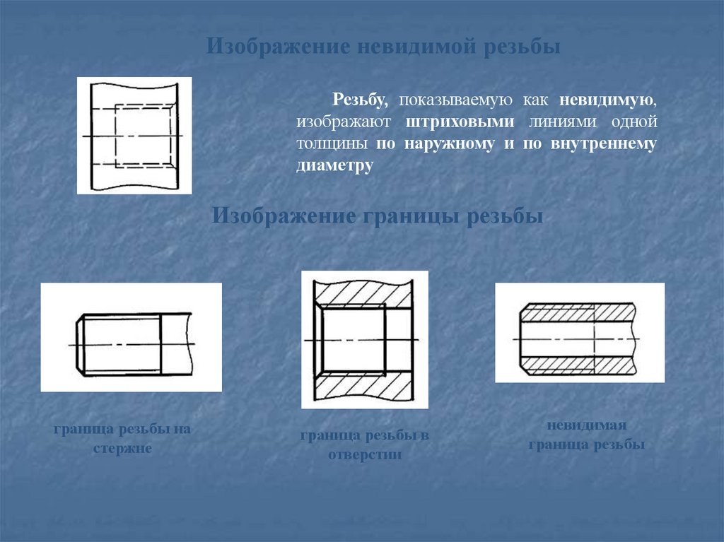 Изображение невидимой резьбыРезьбу, показываемую как невидимую,
