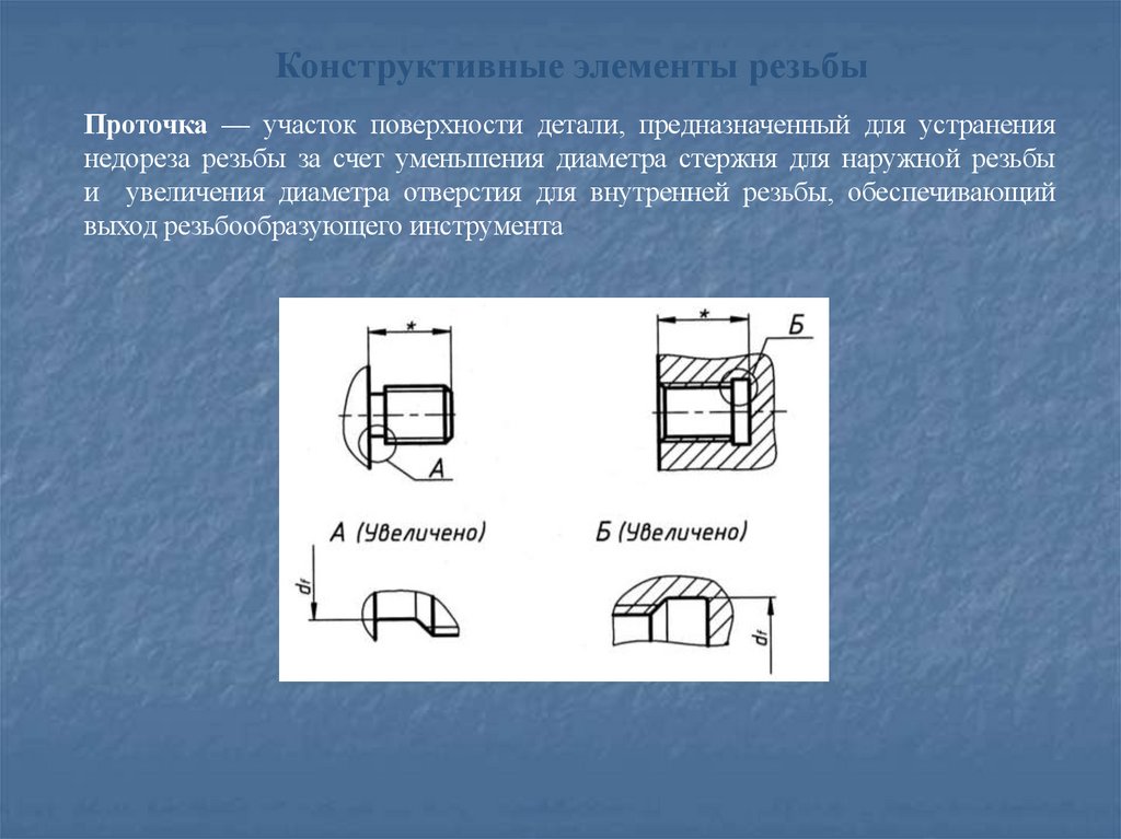 Конструктивные элементы резьбыПроточка — участок поверхности детали, предназначенный для устранения