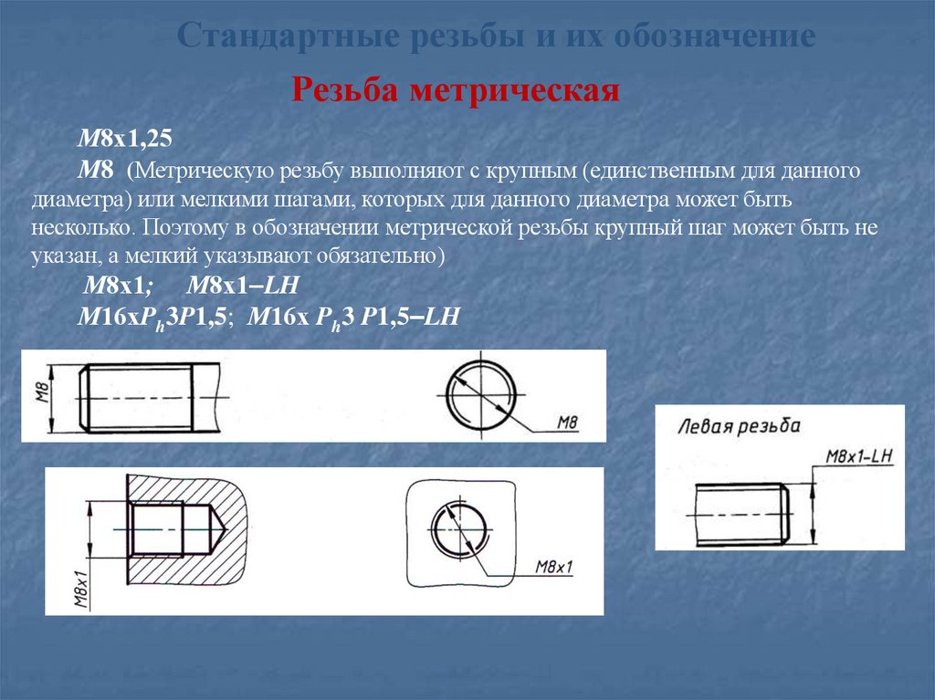Примеры условных обозначений резьбы: