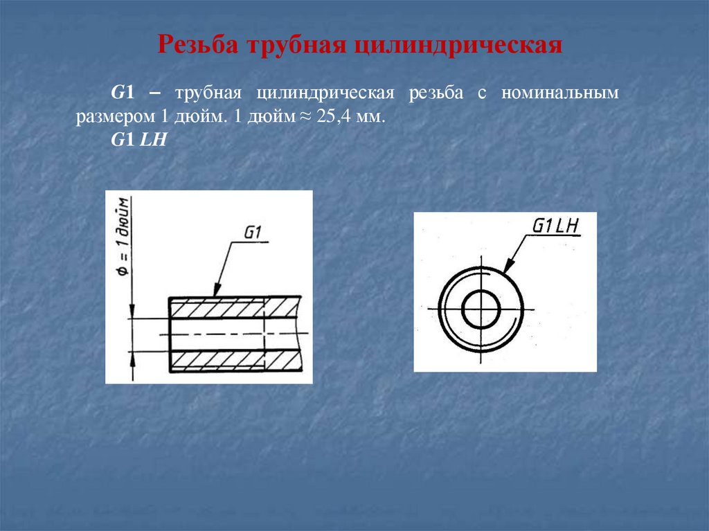 Резьба трубная цилиндрическаяG1 – трубная цилиндрическая резьба с номинальным