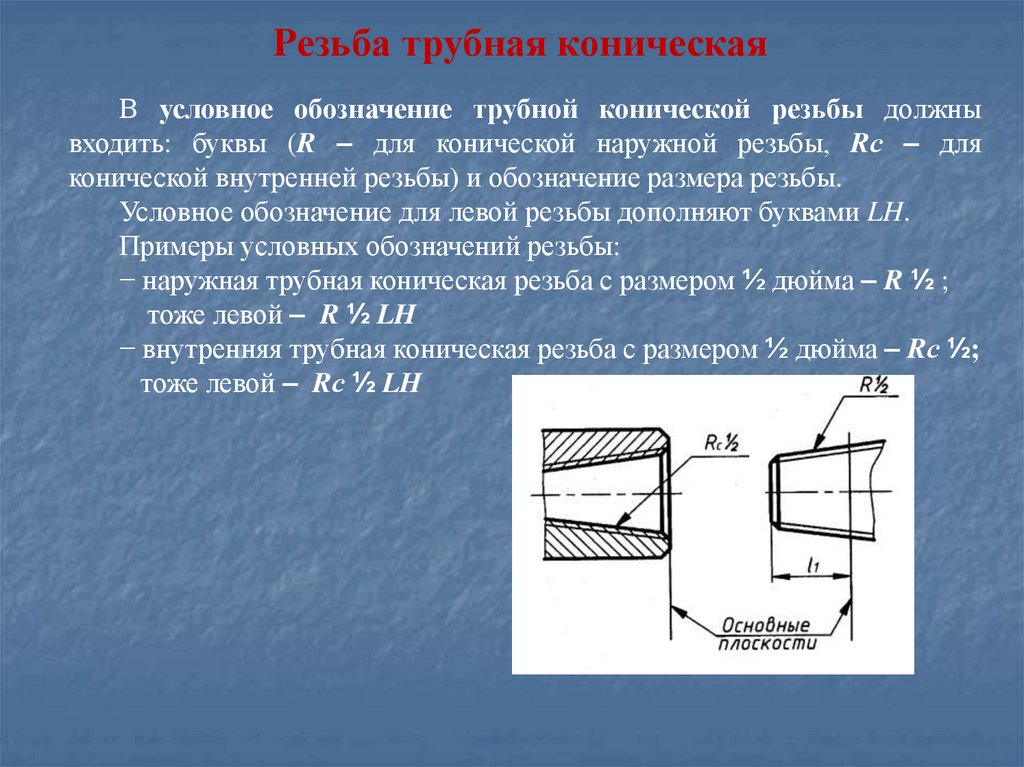 Резьба трубная коническаяВ условное обозначение трубной конической резьбы должны