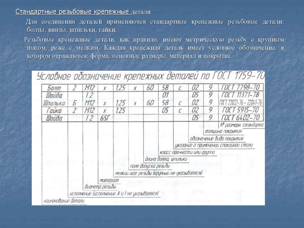 шагом, реже с мелким. Каждая крепежная деталь имеет условное обозначение, в