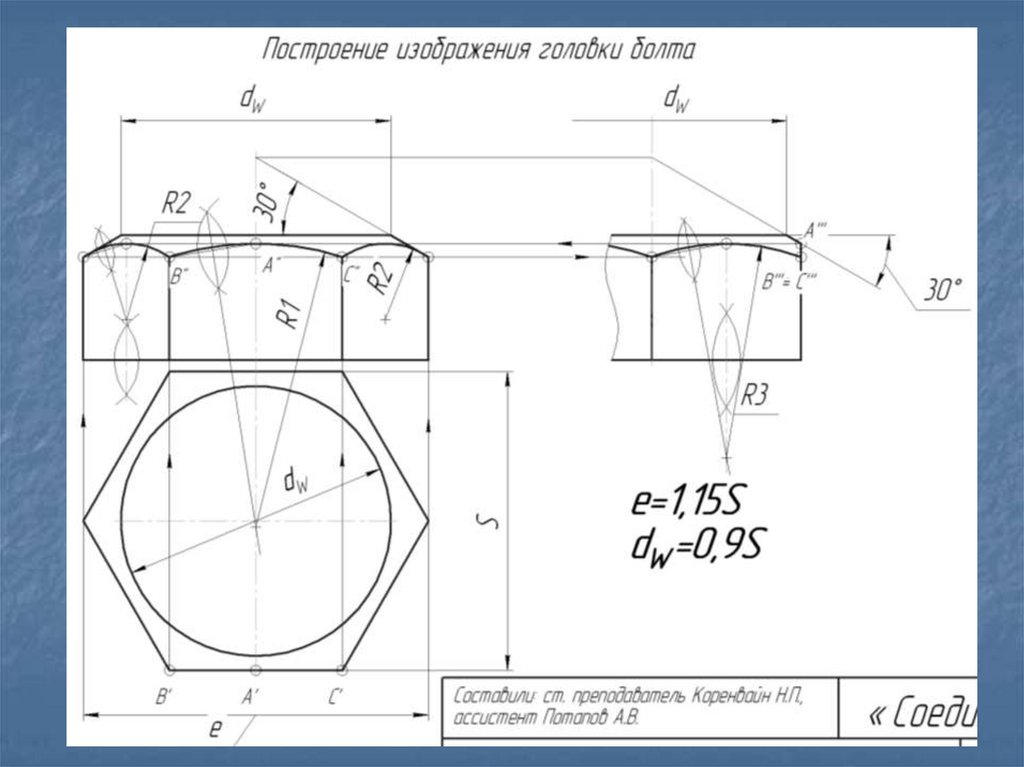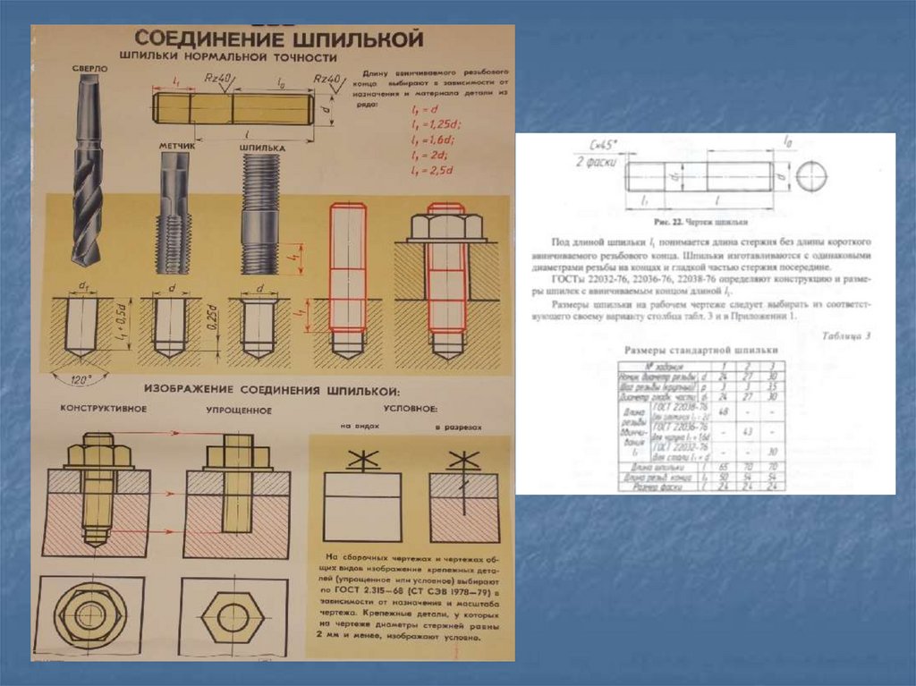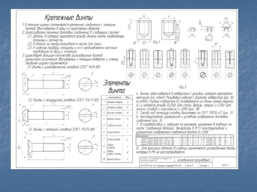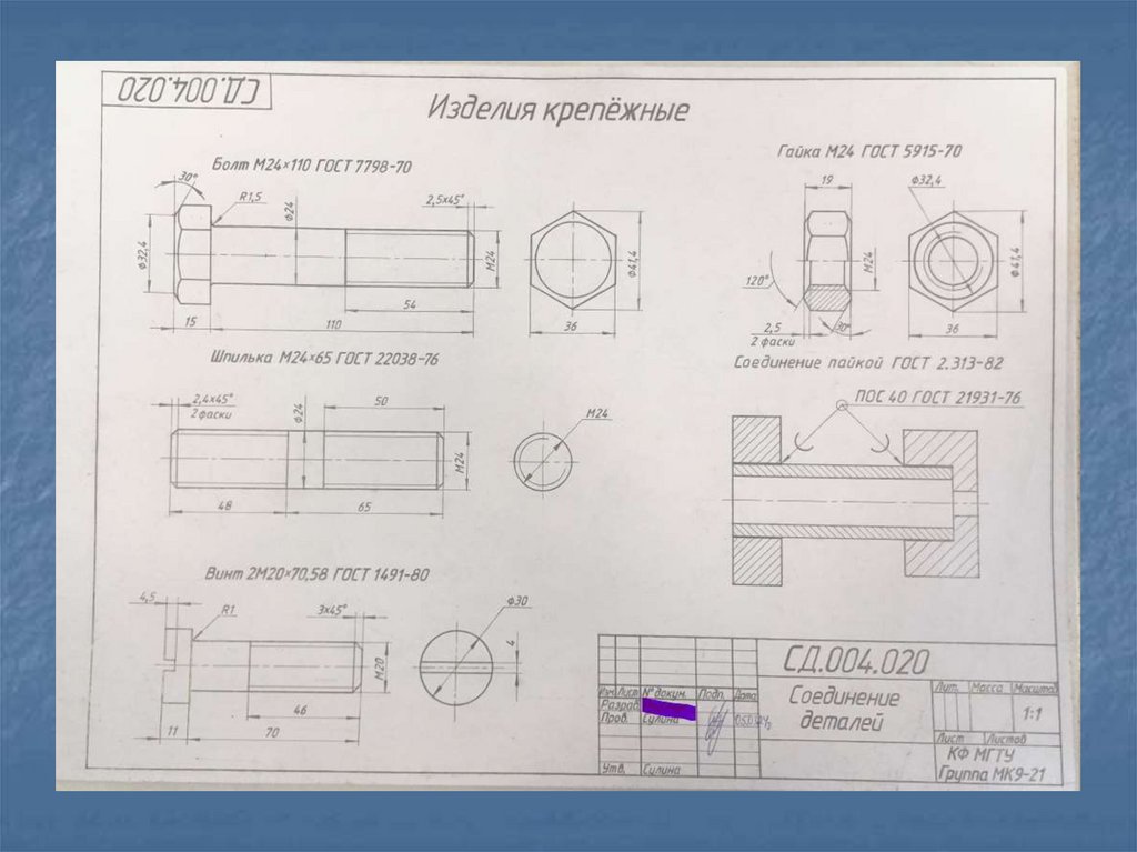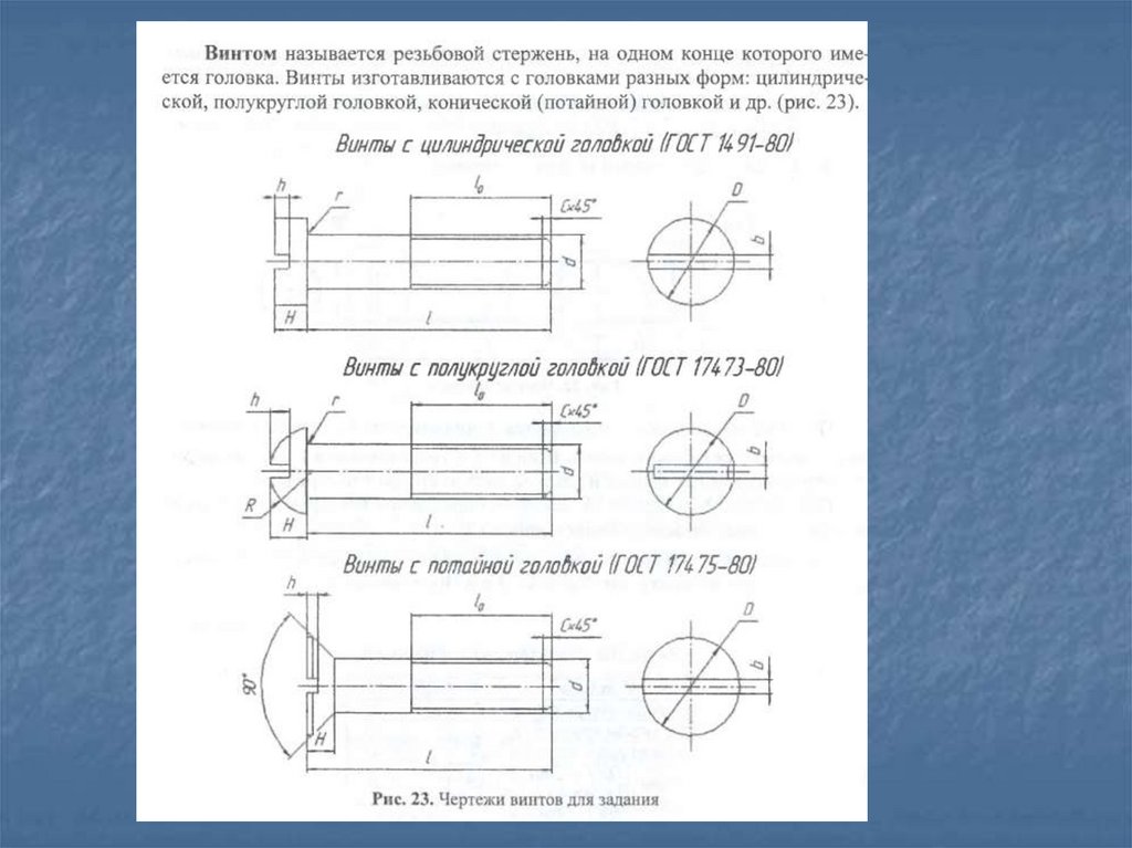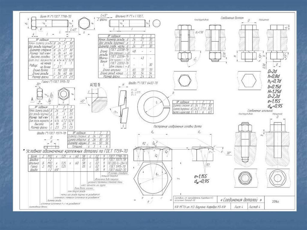 Стандартные резьбовые крепежные деталиДля соединения деталей применяются стандартные крепежные резьбовые детали:
